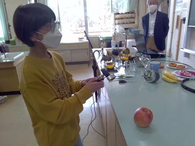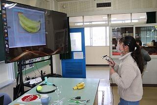 AIが、ものを認識するかどうか、カメラで映す体験をしました。自分で持ってきているものや、用意してもらっているものを映します。