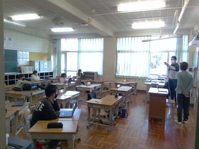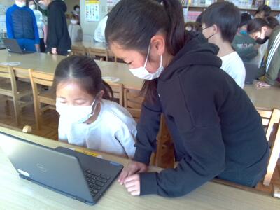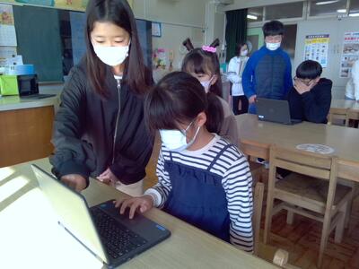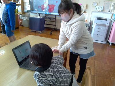 6年生は、今まで外国語の授業で、オンラインでALTと話す機会がたくさんあり、生の英語に触れることができました。中学生になっても、楽しんで英語を学んでほしいです。