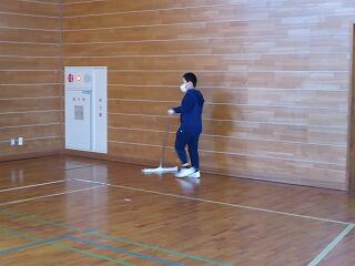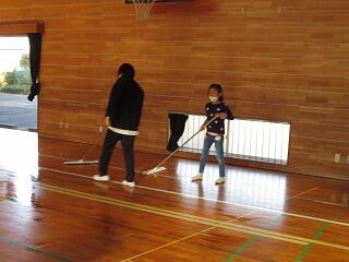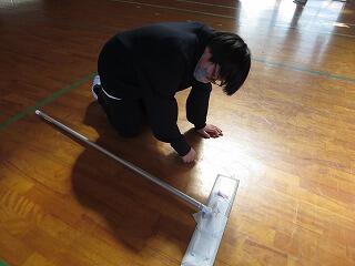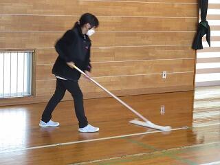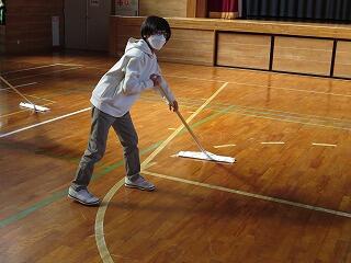今日の5・6時間目、卒業式に向けて体育館の掃除、ワックスがけを5年生が行いました。