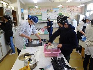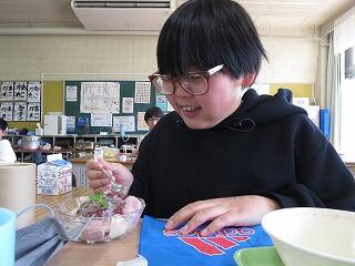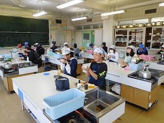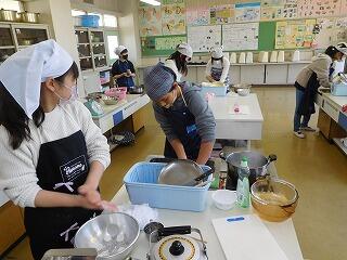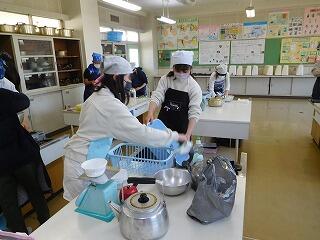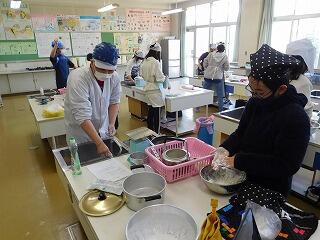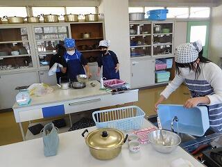 今年度に入ってから行った調理実習ですが、準備は慣れたものです。グループで協力して、臨機応変に動いていきます。
