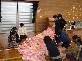 在校生から卒業生へ、ありがとうの気持ちを込めて体育館の装飾を行いました。