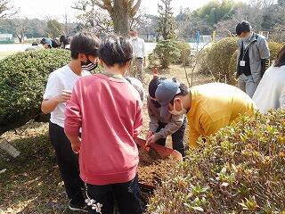 朝、何人かで穴を掘り、午後にみんなで植える準備をしました。