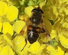 どうやら,ミツバチとハナアブが混ざっているようです。