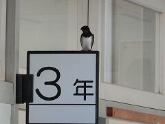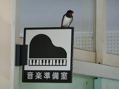 廊下の教室掲示にとまって,教室内を見ているつばめもいて,