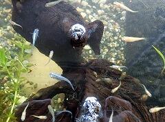 その横をメダカがスイスイ泳いでいます。