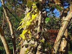 中庭で樹木の様子を見ていたら,ヤマノイモの葉が黄色くなって,きれいでした。