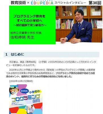 雑誌『教育技術』(小学館)とEDUPEDIAのコラボ企画として行われたインタビューを記事が公開されました。