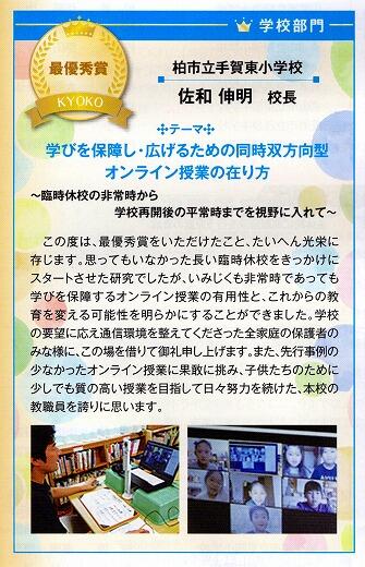 2020年度 日本教育公務員弘済会千葉支部「教育実践研究論文」で,最優秀賞をいただきました。