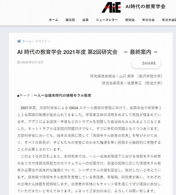 校長日記: AI 時代の教育学会 2021年度 第2回研究会登壇