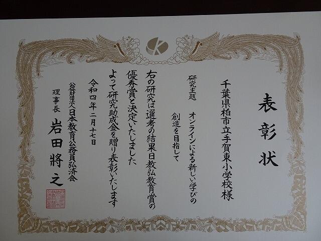 『令和3年度日教弘教育賞』で「優秀賞」をいただきました。