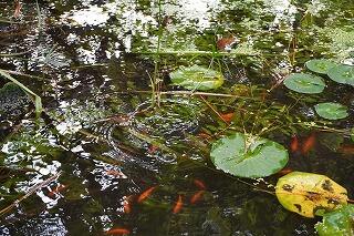 中庭の池で元気に泳いで、子供たちの目を楽しませています。