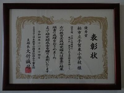 2年ぶりに、公益財団法人日本教育公務員弘済会千葉支部が主催する教育実践研究論文に応募し、「優秀賞」をいただくことができました。