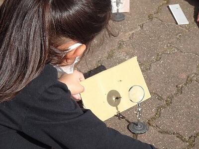 いっしょに行くと、虫めがねで日光を集める実験でした。