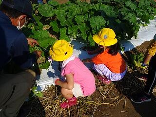 ものを選ぶとよいと教えてもらい、さっそく畑に入っていきました。