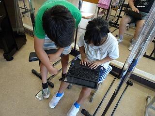 一方、高学年は7月30日のもぎ取り体験の際のプレゼンテーション作りをしていました。