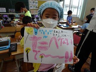 高学年が文面やデザインを考え、低学年がイラストを担当していました。