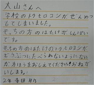 そこで、低学年は、大山農園の大山さんに手紙を書いて、相談することにしました。