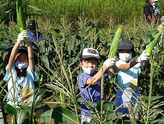特色:全校とうもろこしもぎ取り体験