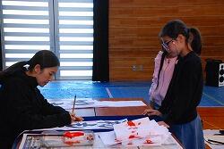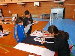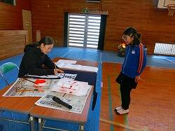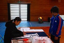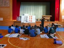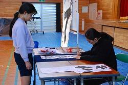 書き初め指導を実施しました 投稿日時 : 18:25 手賀東小学校管理者 書道家の綾部久美子先生をお招きし,3年生から6年生を対象に書き初め指導を行いました。 1・2校時は5・6年生,3・4校時は3・4年生が体育館で練習に取り組みました。 綾部先生からは「墨の付け方や筆使いをよく見てください」とのアドバイスがあり,子どもたちは真剣な表情で筆を運んでいました。 【5.6年生】 【3.4年生】 挨拶担当の児童は,自分の目標も発表しました。 特に3年生は初めての書き初めということで,座る姿勢から丁寧にご指導いただきました。 新年に向けて,心を込めて書く貴重な体験となりました。 {{options.likeCount}} {{options.likeCount}}