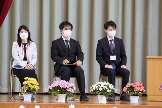 まずは着任式です。新しい先生たちを花のアーチで迎えました。