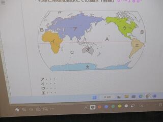 その後、地球儀にはどんなきまりがあるのかについての動画を見ながら、端末を使ってメモを取りました。タイピングの速度も、だんだん速くなっています。