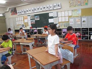外国語の授業では、最初に英語で今日の天気、曜日、日にちなどを聞くことから始まります。