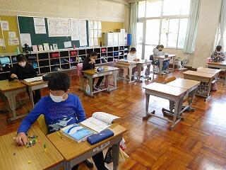 2時間目の算数「かぞえよう」では,カエルやキャンディの絵の数を数え,数字で書く学習をしました。数はわかっていても数字が鏡文字になってしまうこともあり,正しい数字で書けるように頑張っていました。その後はiPad「算数ボックス」の使い方を知り,形づくりの学習をしました。