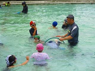 水が苦手で,顔がつけられなかった人がビート板を使いながら顔をつけて泳いでいたり,潜っていたりしていました。
