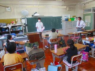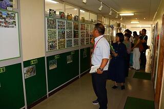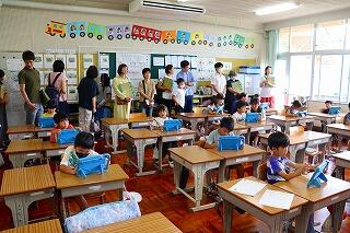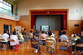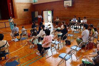 体育館で,小規模特認校である本校の特色ある教育について写真をご覧いただきながら説明しました。その後,2グループに分かれて学校内見学を行いました。1年生から6年生までの授業を参観いただいたり,掲示物やメディアルームなどの特別教室もご覧いただきました。