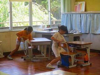 少ない人数で学校をきれいにしていくためには,一人一人が役割を明確にして活動することや清掃の手順を覚えていること,上の人に任せるのではなく,下の学年でも責任を持って時間内に自分の分担場所をきれいにしていくことが大切です。