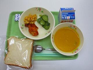 ジュースは給食では出すことが難しいので,パンプキンポタージュでした。