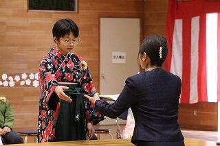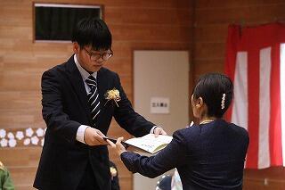 「決意の言葉」を堂々と宣言した後、校長先生から卒業証書を受け取りました。