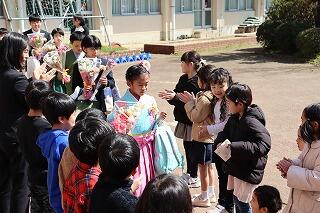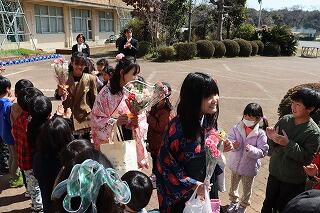 最後は、在校生や先生方など、たくさんの方々に祝福され、手賀東小学校を旅立ちました。