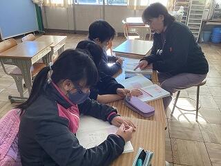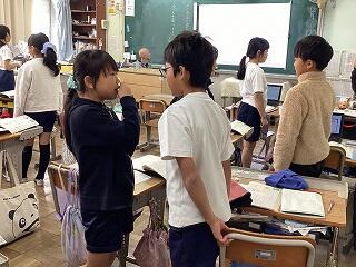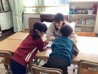 解答を終えた児童は、ミニティーチャーとなって、解答の仕方など「わからない」という児童のサポートをしていました。