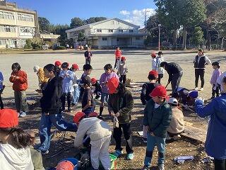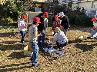 今日は全校児童が手分けをして、サツマイモを育て、収穫し、焼き芋にして食べるという一連の学習のまとめとして、焼き芋パーティが行われました。全校で育てたイモの味は格別だったことでしょう。また、本日勤務している教職員に、おすそ分けをしていただき、ありがとうございます。