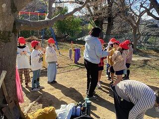 5年生 理科 振り子の実験 重さによって振り子の振り幅の違いを実験で確かめていました。