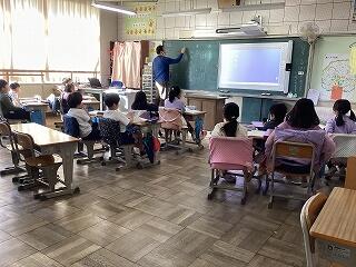 2年生の町探検のまとめ発表会に1年生が招待されました。2年生は体験したことをスライドにして説明しました。体験談やクイズなど工夫を凝らした発表でした。