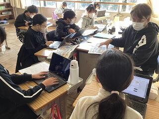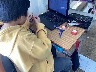 2・3時間目の間の休み時間に、動画を見ながら折り紙作品をつくっています。