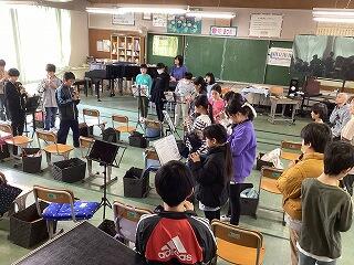 6年生 音楽 卒業式に歌う曲の練習が始まりました。映像とピアノ伴奏のハイブリッド練習でした。