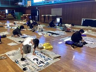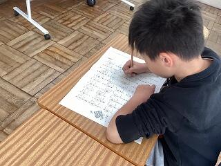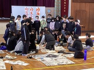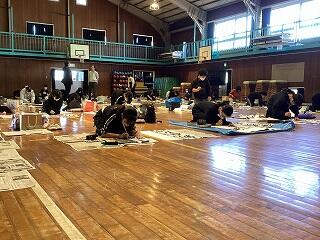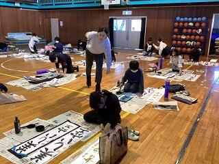 【書き初め練習 3・4・5・6年生】外部講師・綾部先生の指導の下、書き初め練習がありました。