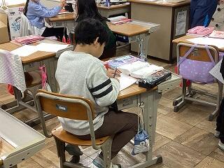 2時間目と3時間目の間の休み時間に、避難訓練が行われました。大規模な訓練ではないけれども短時間ですぐにできることから、ワンポイント避難訓練と言ったりもします。地震はいつ起きるかわかりません。教室に全員いるときとは限りません。とっさに自分の身を守る行動がとれることが重要です。たまには、外出している際に地震に遭ったらどうするかを考えて行動するシミュレーションをしておくことも必要かもしれません。