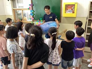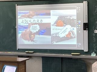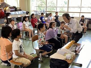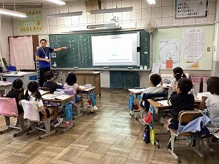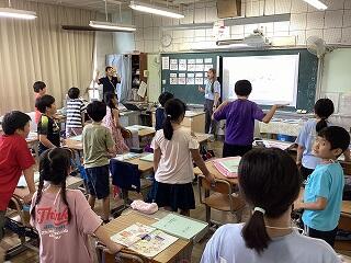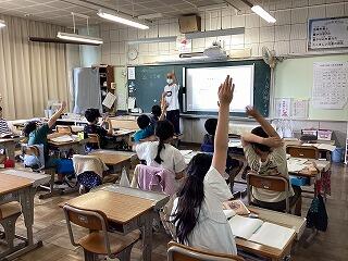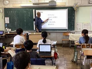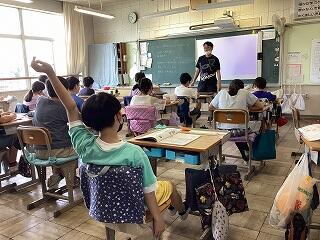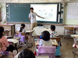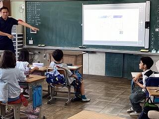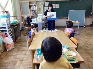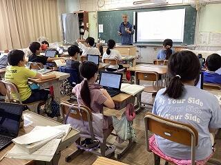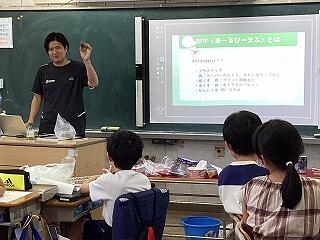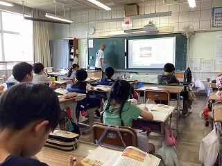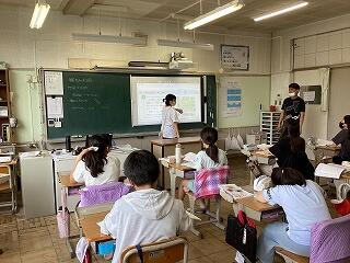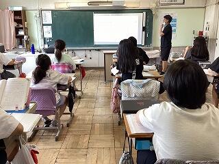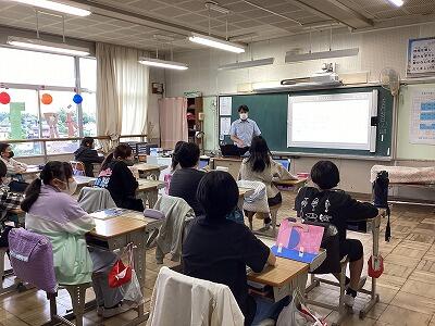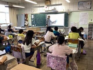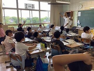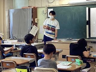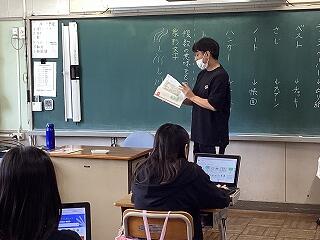4年生に話しています。 発表しています。