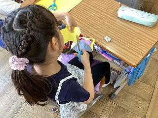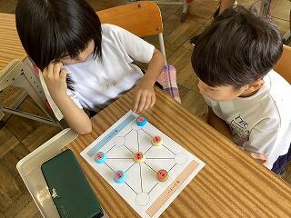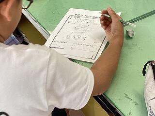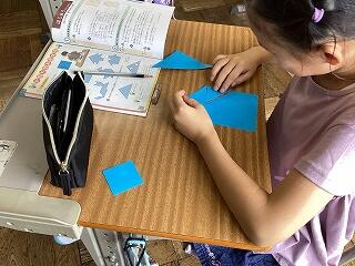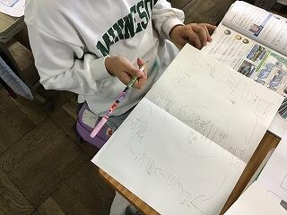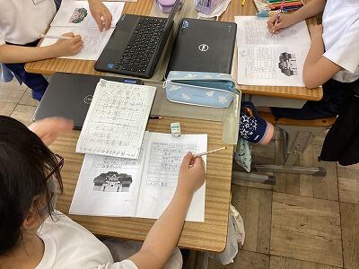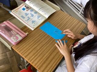 「立体図形は難しい」 頭をひねっています 落ち着いて学習に取り組んでいます