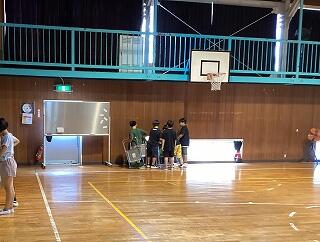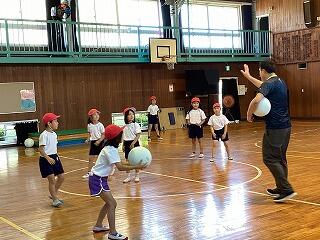 今日から体育館のアリーナ部分の使用ができるようになりました。早速、1・2年生の玉入れの練習を体育館で行いました。