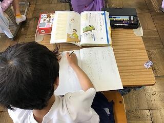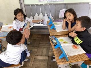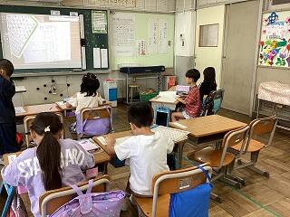 2年生はかけざんの仕組を学び始めています。 5年生は英語の新出単語を学習しています。