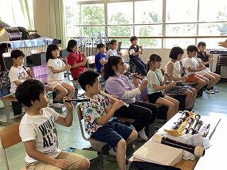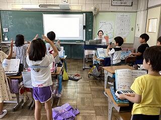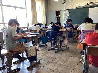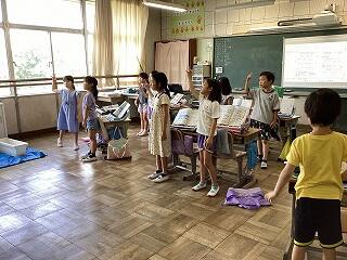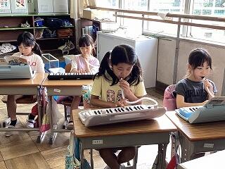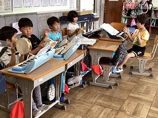 6年生は手賀の丘まつりでの演奏曲を練習中です。 1年生は国語教科書を写し書きしています。