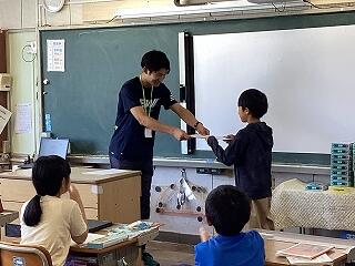 たんぽぽ学級の1・2年生がリレーのバトン渡しの練習をしています。たくさん練習したので、本番では上手にバトンが渡ることでしょう。