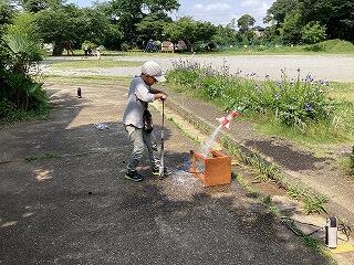 午前には、開会式・閉会式の練習と、科学作品展と読書感想文の表彰を行いました。表彰を青空のもとで行うことは昭和初期に戻ったような感じです。