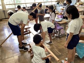 卒業式練習で、教員が椅子への腰かけ方・座り方を説明しました。その際、教員の説明する様子が見えずらいと思ったのか、前方に座っていた6年生が椅子を下りて、後方に座る4・5年生が見えるようにしていたという話を聞きました。