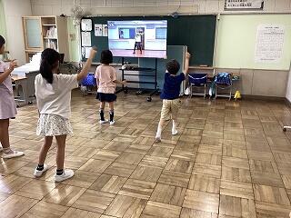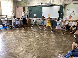 全校児童に模範演技を見せようと、全体練習前に